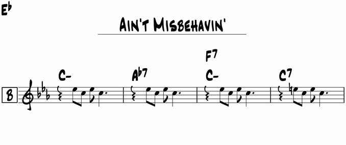 ただ F7 だと流れ的にアドリブが少々やりにくいのではないかと思います。それでこの部分のキーの1度の Cm に戻るというのが出て来たんだと思います。流れ的には分かりやすいです。