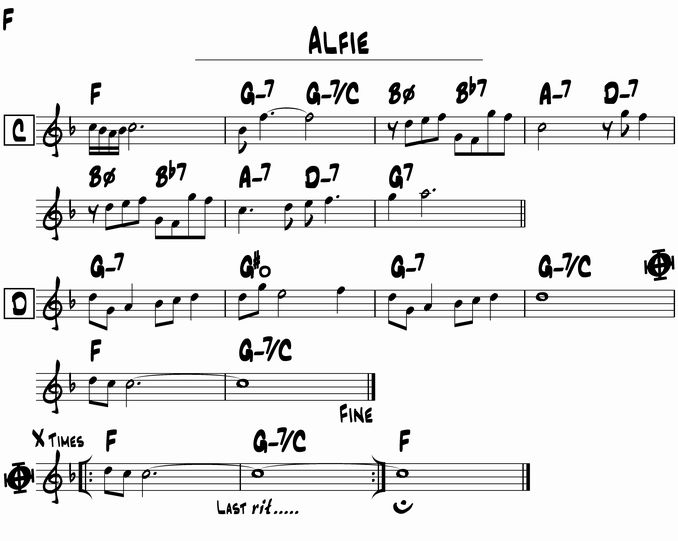 ちなみに iReal ですが、ディオンヌ・ワーウィックを元にしているように思います。バカラックといえばディオンヌですよね。でもその演奏は1コーラスのみで rit したりフェルマータだったりで、それで歌う方はあまりいないかと思います。iReal がそれというのはどうかと思いますが、まあメロディは書いてなく、この曲で iReal を使う方はほとんどいないだろうと思うので問題ないですかね(^^)