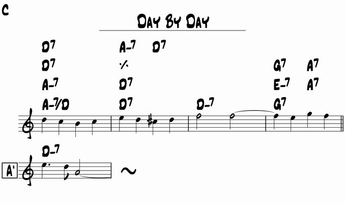 ここは基本的には D7 が2小節の感じで、違っていてもその変形です。