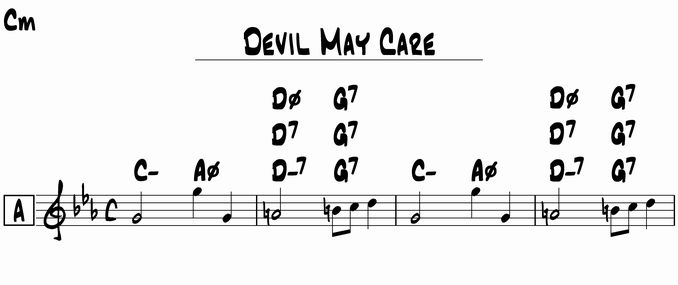 一番上ですが、これはダメです。メロディと合っていません。ラと Dm7b5 は合いませんね。