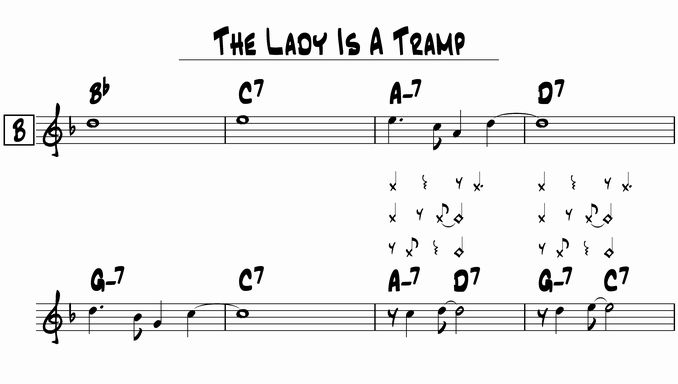 この部分は譜面に書いてない事のほうが多いと思いますが、バックがキメを知っていると、そうしてしまうという事がよくあるかと思います。そのキメを私は経験上で一番下でやっていましたが、どうやら一般的というわけではなさそうです。