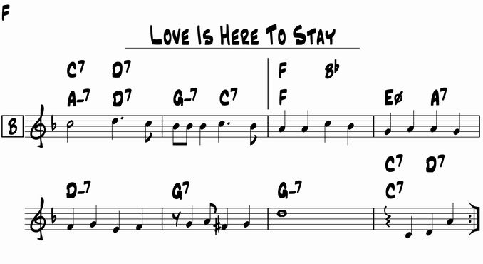 8小節目。下と上の3拍目から D7 というのがカッコ書きを含めて半々ぐらいでした。まあ実際書いてなくても D7 を入れる事は結構あります。私はテーマは入れないほうが好きです。