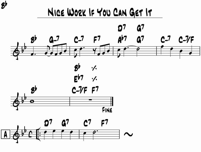 私の下は普通に5度セブンス系です。真ん中はイメージがなく、Bb が2小節というのもあまり面白くないかなあと思い。そうしています。最後5度セブンス(F7)から1度(Bb)へ行きたいのが急に3度セブンス(D7)になるのが裏切られた感じで好きです(^^)