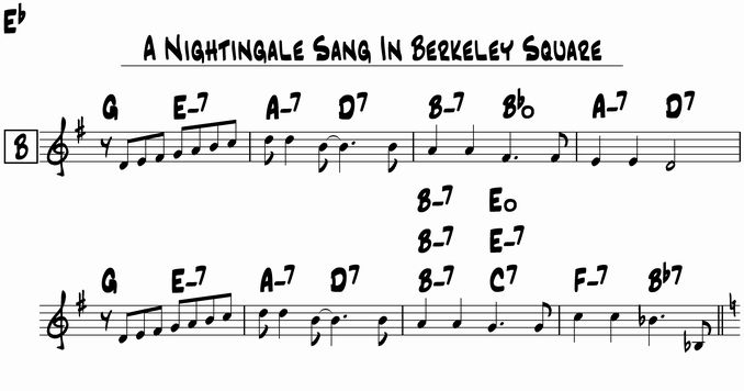 私はキー G で一旦落ち着く6度マイナーの Em7 より、ここからキー Eb に戻りますよという6度セブンの C7 のほうが好みです。ちなみに Edim よりもっとはっきりキー Eb の感じがする C7 のほうが好みです。