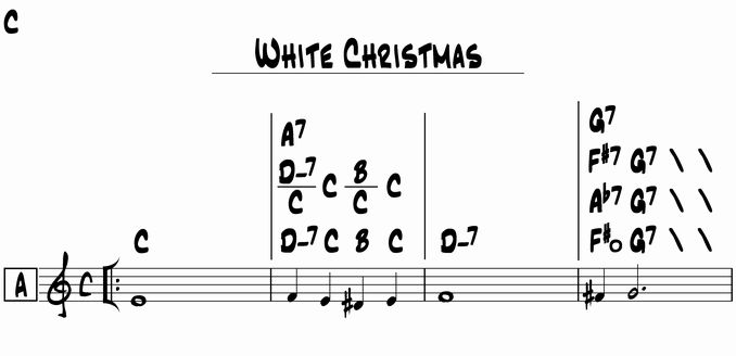 一番上の A7 だけは iReal と他にもありましたが、私の感覚ではメロディの良さを消しているように思います。ジャズはアドリブの取りやすさでコードを変える事が多いですが、さすがにこれはやり過ぎではないかと思います。