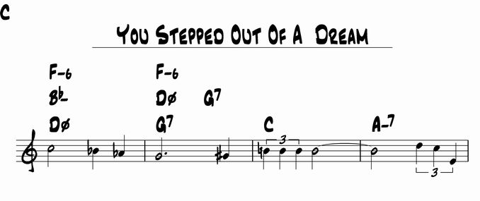元々はこうで、Fm6 と Dm7b5 はベースが違うだけなので II-V になったのかもしれません。