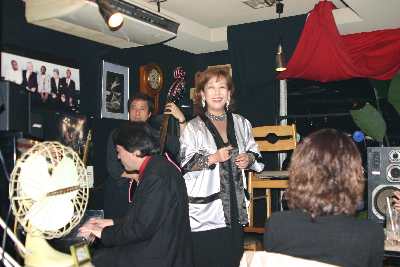 打ち上げで歌うレイさんとバックの2名。