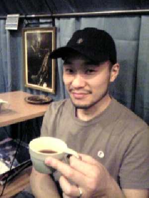 マスターは後から来る事になっていて、しばらくしてから来たのですが、なんと、ベースのハチくんが一緒ではありませんか。彼は私と国分寺T'sで一緒だったのですが。彼に聞くと、T'sにいた人たちの何人かでどこかへ食事をしに行く事になったのだが、彼はそれに行くと帰れなくなる。で、私とレイさんが赤いからすに行く事は知っていたので来てみたら、すでにみんな打ち上げに行ってマスターしかおらず、一緒に打ち上げに来たのだとか。今回の東京ツアーではハチくんと仕事はなかったのですが、4回も会った事になります。