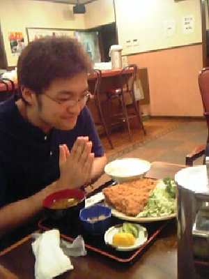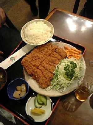 その後、私と鎌倉くんは起きてから何も食べていなかったのもあり、3人で食事に行きました。行ったのは、とんかつ屋。鎌倉くんが注文したのは特大ヒレカツセット。これが驚きの量で、普通でもデカいヒレカツが2つ乗っていたのです。私はロースカツセットでしたが、これでもかなりデカかったです。その倍ですからねぇ。ところが鎌倉くんは何ともないどころか、ご飯をお代わりしよった(^^)。彼は「普通に」と言ったのですが、この店はデカ茶碗なので普通の茶碗の2倍はありました。いったいどういう量感覚の店なのか???これで鎌倉くんは1ヶ月何も食べなくてOKです(^^)