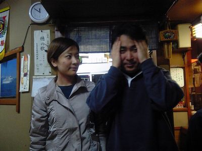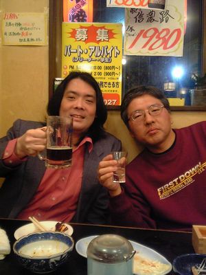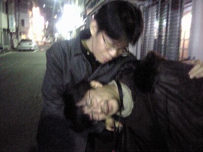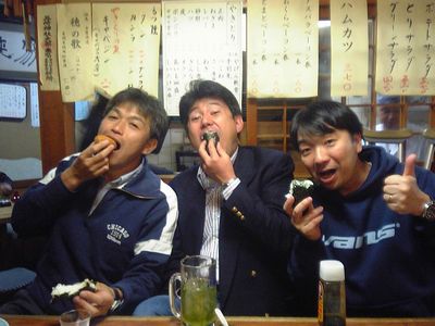 ベロ酔いの浅田さんと、介抱する現役の鉢村。