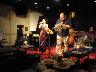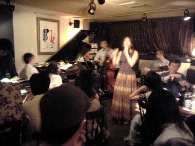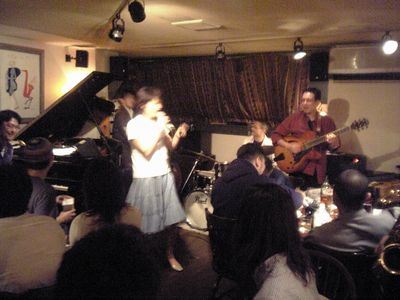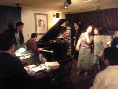 その後、私も参加。ピアニストは誰も来ず、他にピアノを弾けるのは貴和ちゃんだけで、私はかなり弾きっぱなしでした。セッション進行役のヴォーカルの佐野智英子さんとは初対面でした。