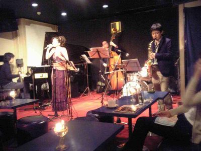 長澤勇気(b) 国貞雅子(vo) マスター高橋(ts)