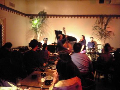 店に入ると、内田さんの会社の美人秘書の松尾浩子さんがいて、彼女に驚かれました。確かに私は確実に「行く」と返事をしてませんでしたからね。内田さんにも挨拶。ステージを見ると貴和ちゃんがピアノを弾いていました。ベースは私が大学を卒業した頃からの知人の長谷川泰弘さんでした。1年半ぶりぐらいです。