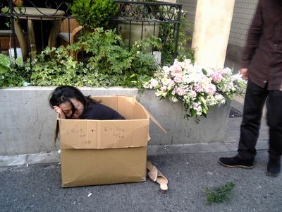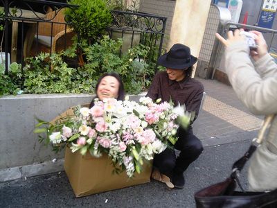 花束を送るったって、ダンボールの上だっせ(^^)