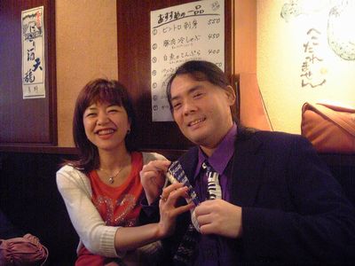 18時半前に入ると、諸田さん、林さん、泉ちゃんはすでに来ていました。簡単にサウンドチェック。そして例によって3人で、隣の居酒屋「くしろ村」へ。林さんは、昼にピットインでライブだったようで、少々お疲れ気味でした。