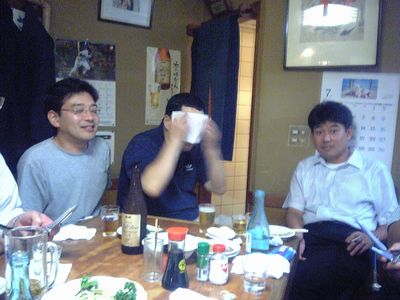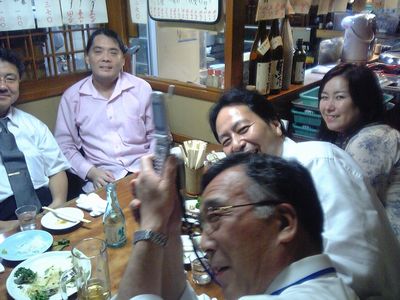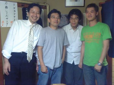 そして、近くの居酒屋へ移動して打ち上げ。メンバーは、諸田さん、私、くにくに、林さん、お客さんの木村さんの5人でした。