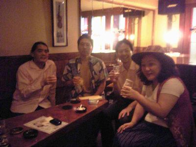 まず17時に、林さん、私、T'sマスターが入って乾杯。すぐドラムの辻田さんが来店。しばらくして、榊原さん、レイさん、ヒガシエミちゃんが来店しました。みんなで音楽の話やその他の話で盛り上がりました。