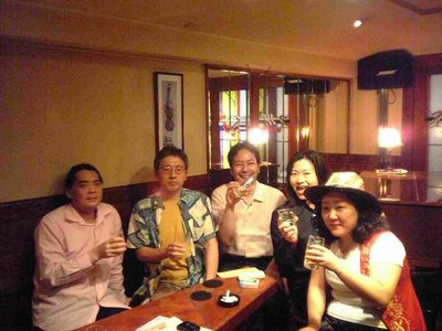 終わって、少々人数が少なかったのですが、いつものように一番後ろのテーブルは居酒屋貴和子ガハハ!!です(^^)。残った人たちも参加して打ち上げです。音楽の話やら他の話で盛り上がりました。