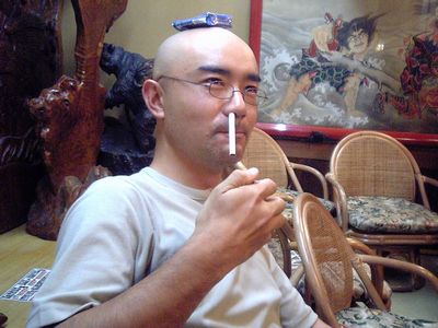彼によると、これがタバコの正しい吸い方だそうです(^^)