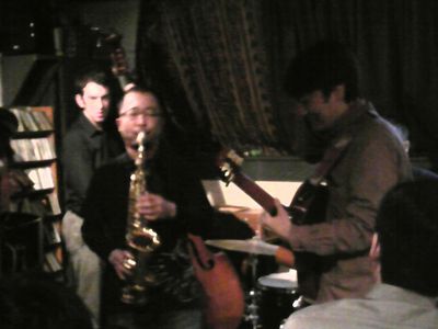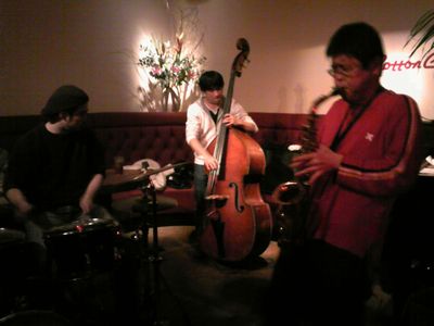 コットンと同系列のイントロの店長でアルトサックスを吹く「ゴッド井上」こと井上さんも、深夜3時ぐらいにイントロを閉店してから来ました。久しぶりの挨拶。彼のプレイは一風変わっていますが素晴らしいです。イントロ店長歴20年以上?ジャズを知り尽くしていますからねぇ。また井上さんはセッションの仕切りもピカイチです。