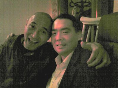 大学時代から20年以上の付き合いになる佐藤"ハチ"恭彦(b)くんと。