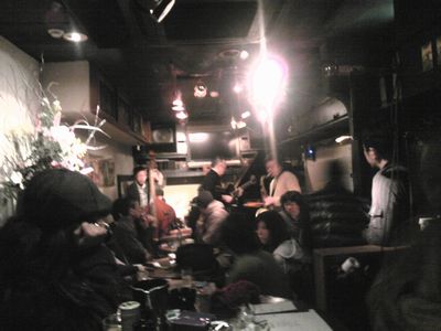 夕方ホテルを出て、軽く食事をして、歩いてJへ。店に入ると、ヴォーカルの人たちはいましたが、バックの3人はいませんでした。店の人に聞くと「隣の居酒屋へ行きました」と。これはいつものごとくJの隣の「くしろ」で飲んでいるに違いない。という事でくしろへ行ってみました。