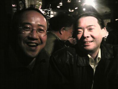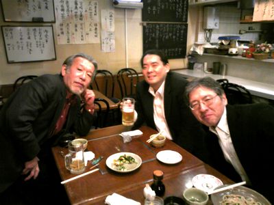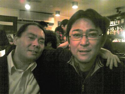 ほどなく社長が誰かに電話をしているようで、どうやら私が来店したのを誰かに伝えている様子。すると割とすぐにジャズ研同期のEve(男)が来ました。彼とは3年半ぶり程度でしたが、それでも相当驚いていました。そしてEveがこれまた同期の健太郎に電話をしました。行けるかどうかわからない、と言っていたようですが、閉店30分少し前の23時前に店に来ました。健太郎とはとても久しぶりで、15年以上は会ってないと思います。んで、この時の健太郎のパッと見の印象は・・・全く健太郎とわからなかったです(^^)。ま、しばらく会ってないとこういう事もあるんですねぇ(^^)