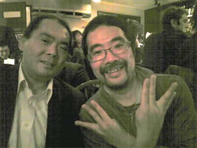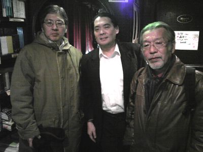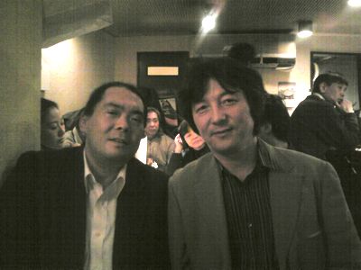 演奏が終わって村山先生がカウンターへいらっしゃいました。もう若干飲んでいる様子でした。3年半ぶりです。レイさんもカウンター席に座り、演奏を聴きながらの歓談です。