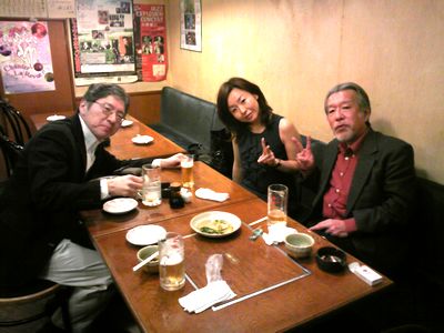 終わってどこからか「内田さんが来てるよ」との声が。理科大ジャズ研大先輩の内田さんと美人会社秘書の松尾浩子さんでした。浩子さんからはあらかじめ「4日間のどれかに行きますよ」と連絡ありました。内田さんと浩子さんとは3年半ぶりです。