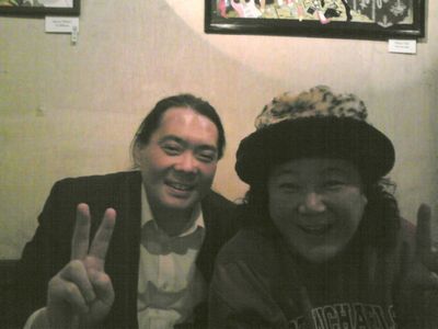 休憩時間になりメンバーと歓談です。すると入口からどこかで聞いた事あるような強烈な「ガハハハ!!」の声が(^^)・・・ヴォーカルの清水貴和子ちゃんでした。貴和ちゃんのバヤイ、その笑い声で100km先から存在がわかってしまいます(^^)。彼女とはもう16、7年ぐらいの付き合いになります。初めて会ったのは代々木のNARUで、私が出演している時に彼女が遊びに来ました。それから色々一緒にやりました。最後に会ったのは3年前で場所は北九州、彼女が福岡にライブツアーをしに来ていた時でした。で、この日は23時過ぎの夜行バスで新潟へ行くので、それに乗れればよい、との事でした。