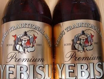 右が普通の瓶、左がラッキー・エビスです。千本に1本とすると、普通に飲んでいて当たる事はほとんどないですよねぇ。確かに大変珍しいです。という事で、この左の柄の瓶をブラボーに飾ってもらう事にしました。2009年5月の時点ですが、この瓶はブラボーにありますよ。ただし、これで私の人生の運は全部使い果たしました(^^;)