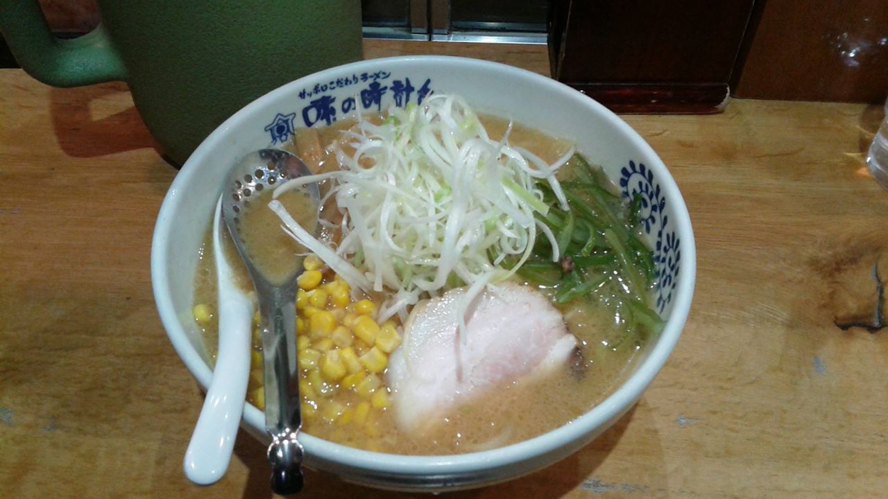 「味の時計台」で注文したのは普通の味噌ラーメンにネギとコーンのトッピング。特別なインパクトはないですが、普通に美味しい味噌ラーメンでした。