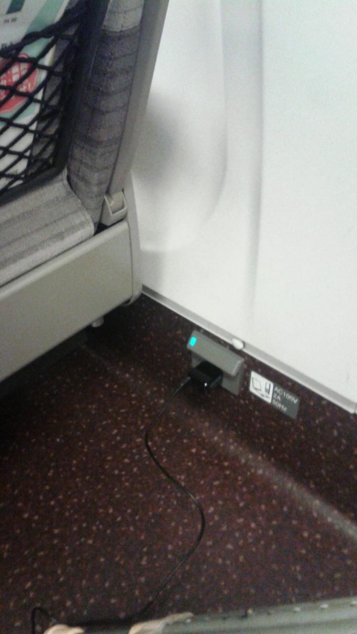 新幹線内にあったコンセント。携帯電話の充電が出来ました。