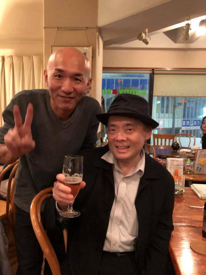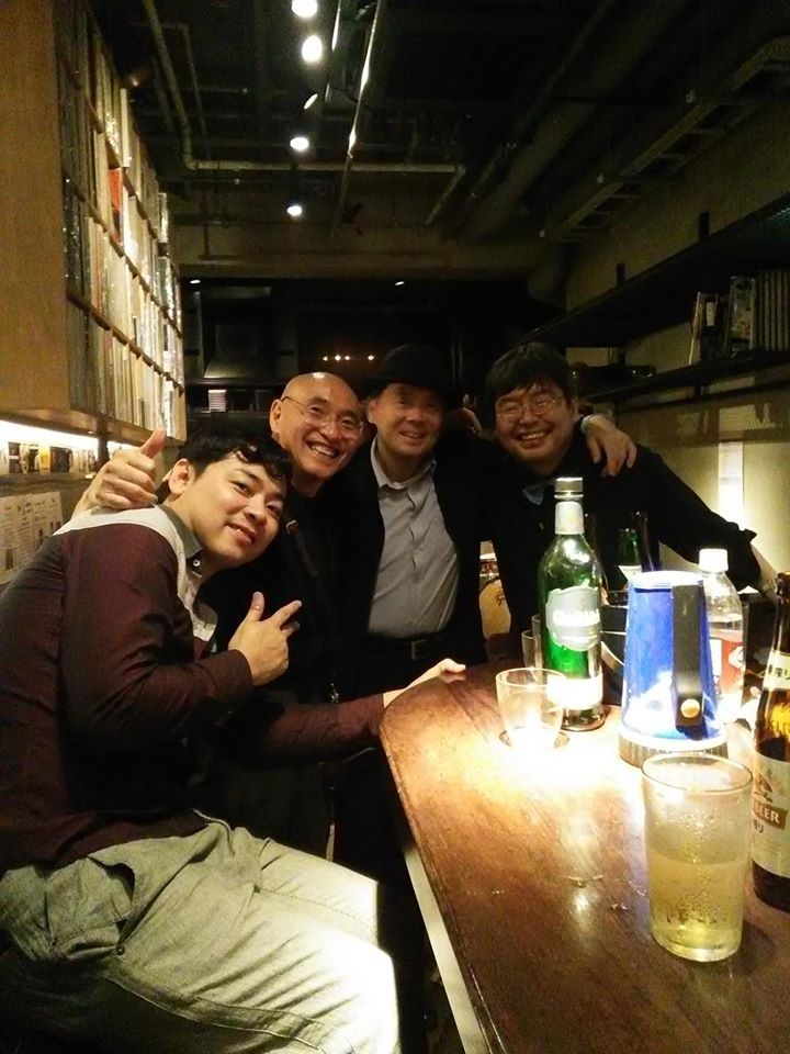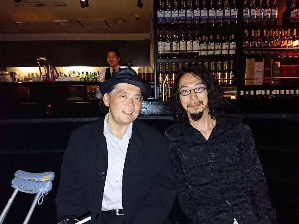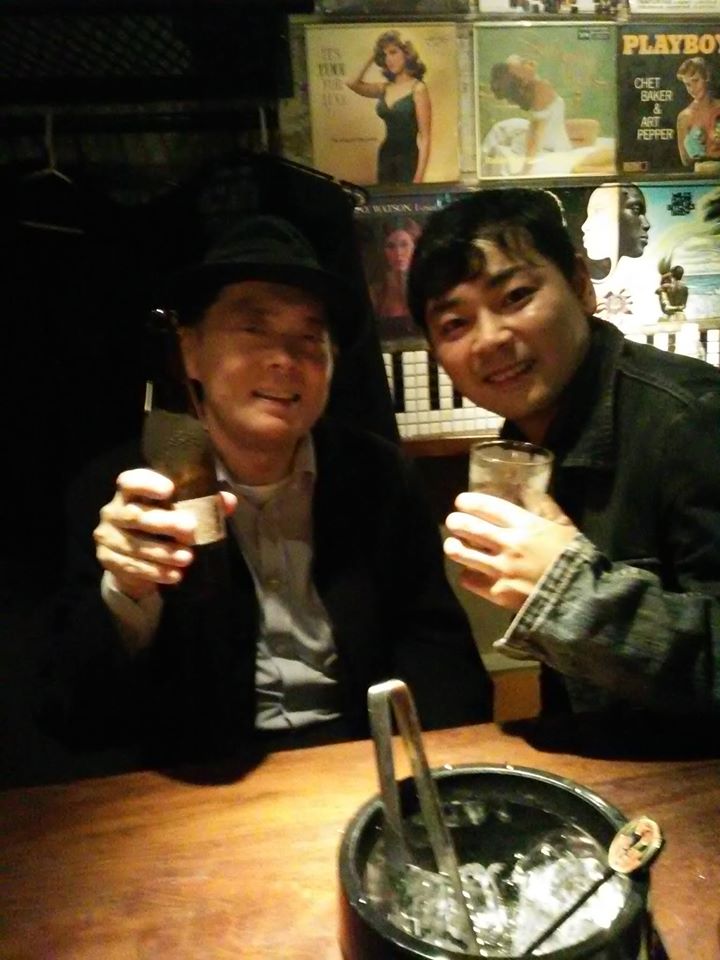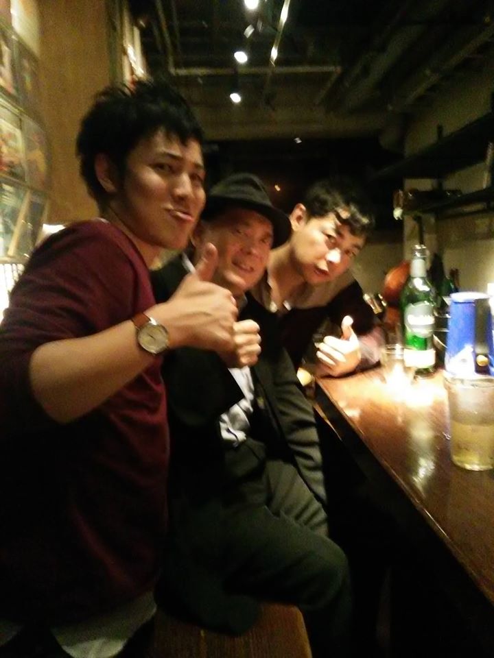 なんと、今は宮崎県都城市で「OLD EARTH」という店を経営していて、ドラマーでもある古地くんがいたではないですか!!彼は以前東京で大活躍し、私も東京在住時に彼がまだ22か23歳ぐらいの時からの知り合いです。彼は確かに今でもたまに東京へ行っているのですが、まさか私が8年ぶりに東京へ行って、しかも開いていないかもしれない時間にたまたまドンファンへ行って、そこで同じ九州在住で東京時代からの演奏仲間と会いますか?まさにミラクルです!!(^o^)