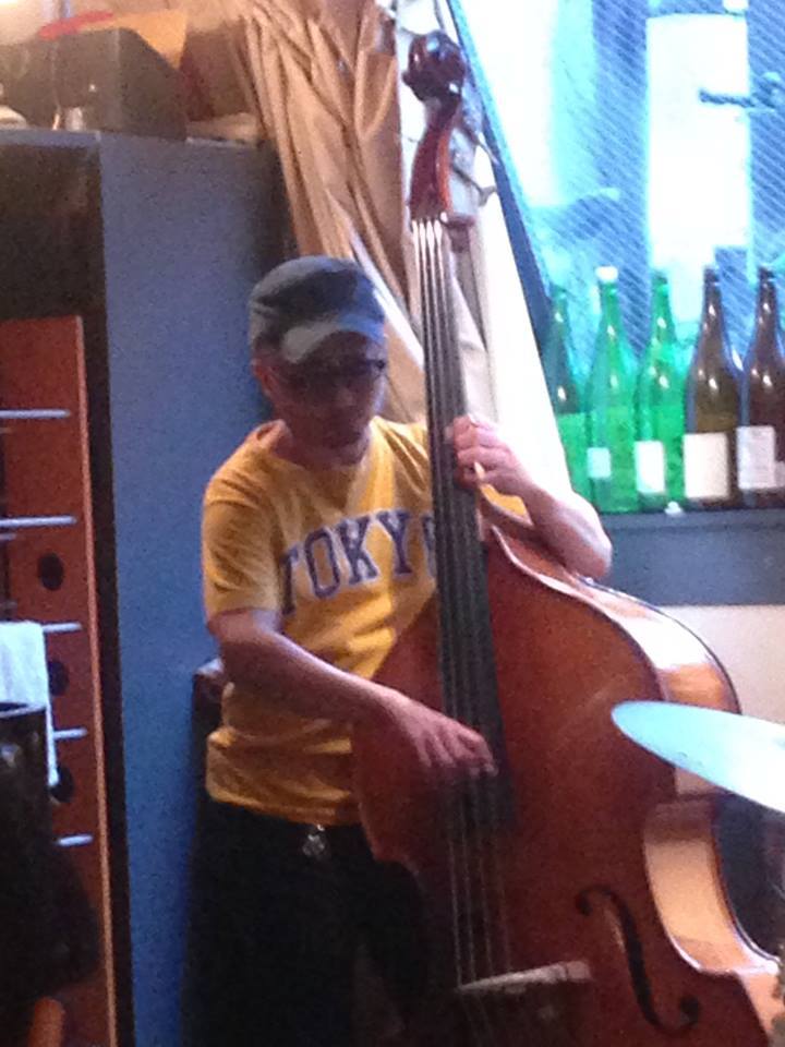 そして、このセッションに大事な知り合いが来てくれました! もう腐れ縁とも言っていい(^^;)、ベースの林正男さんです。林さんとは、私が大学卒業後すぐの知り合いで、もう30年近い付き合いですが、演奏も飲み会もどれだけやったかわかりません。