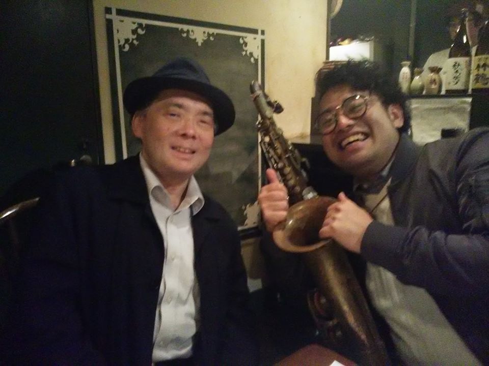 このセッションに学バン時代の後輩が2人来てくれました。1人は私が2年間ほど参加していた法政大学のビッグバンドの直接の後輩でテナーの小澤祐二くん、もう1人は六大学ビッグバンド連盟の1つ、中央大学のビッグバンドでドラムの岩城昌宏くん、2人とも私の3つ下の代です。