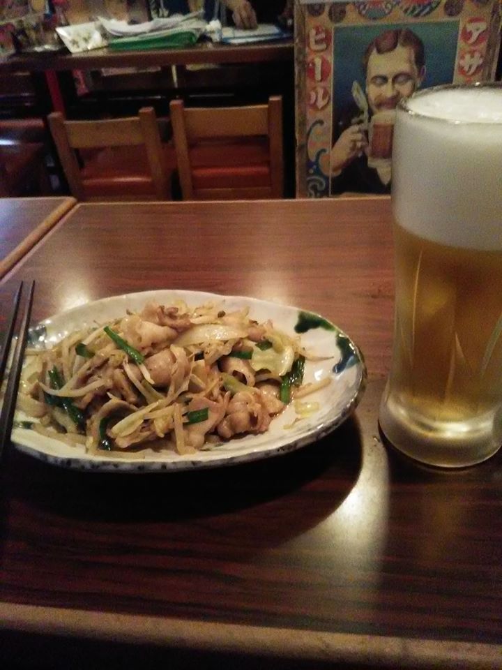 肉野菜炒め。至ってシンプルな味付け。それがいいのです。昼飲みとしては最高です(^^)