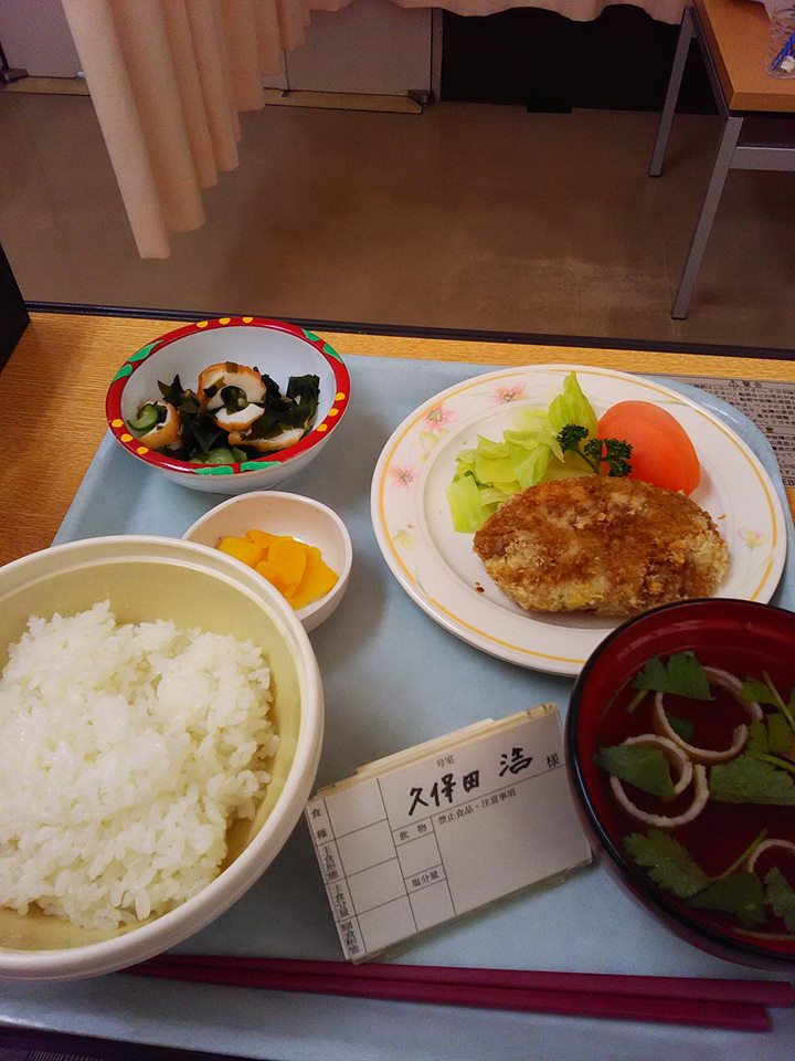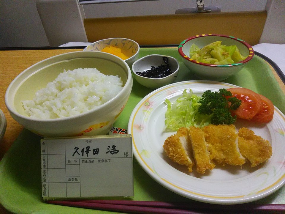 入院しました。大部屋希望だったのですが、個室しか空いてないとの事で、とりあえず個室となりました。病名は「左肘関節脱臼骨折」となっていました。この日に行なったのは、手続きと夕食程度でした。