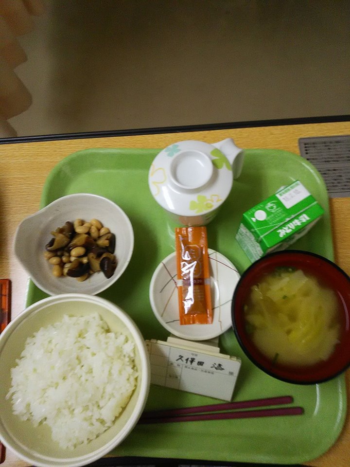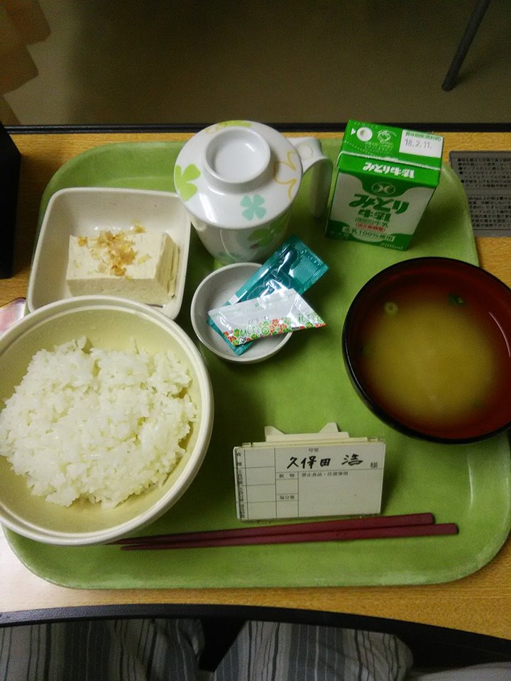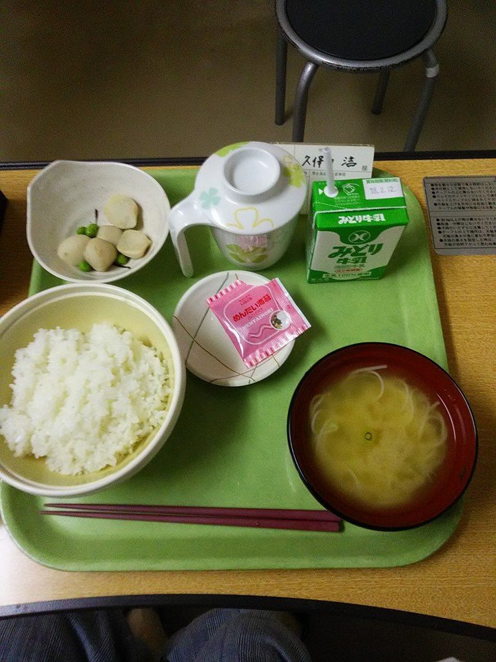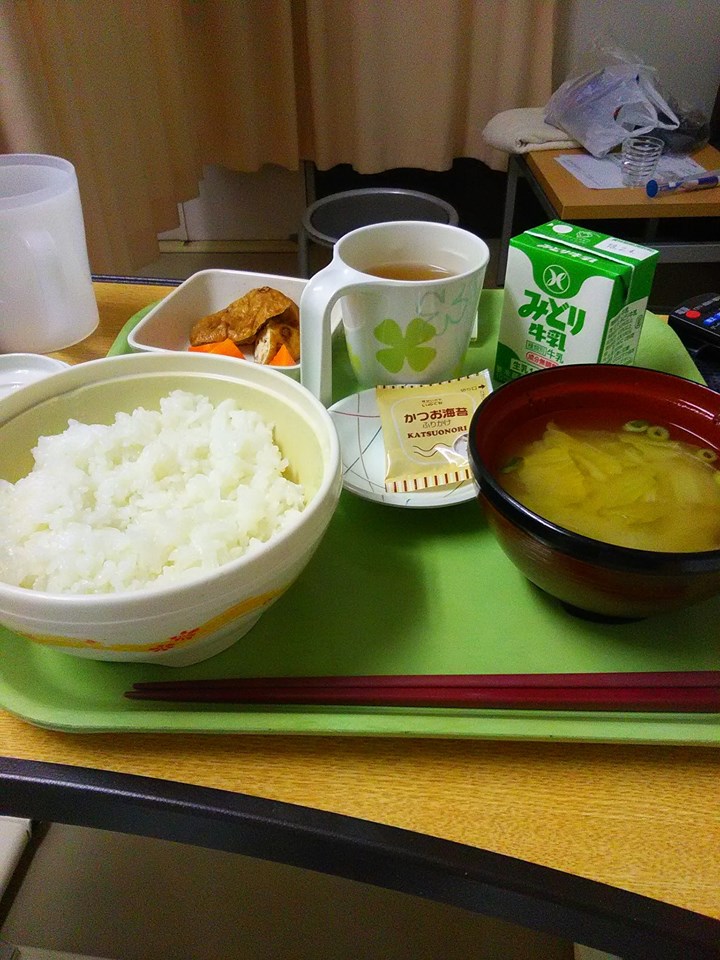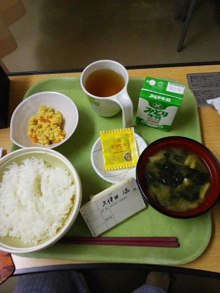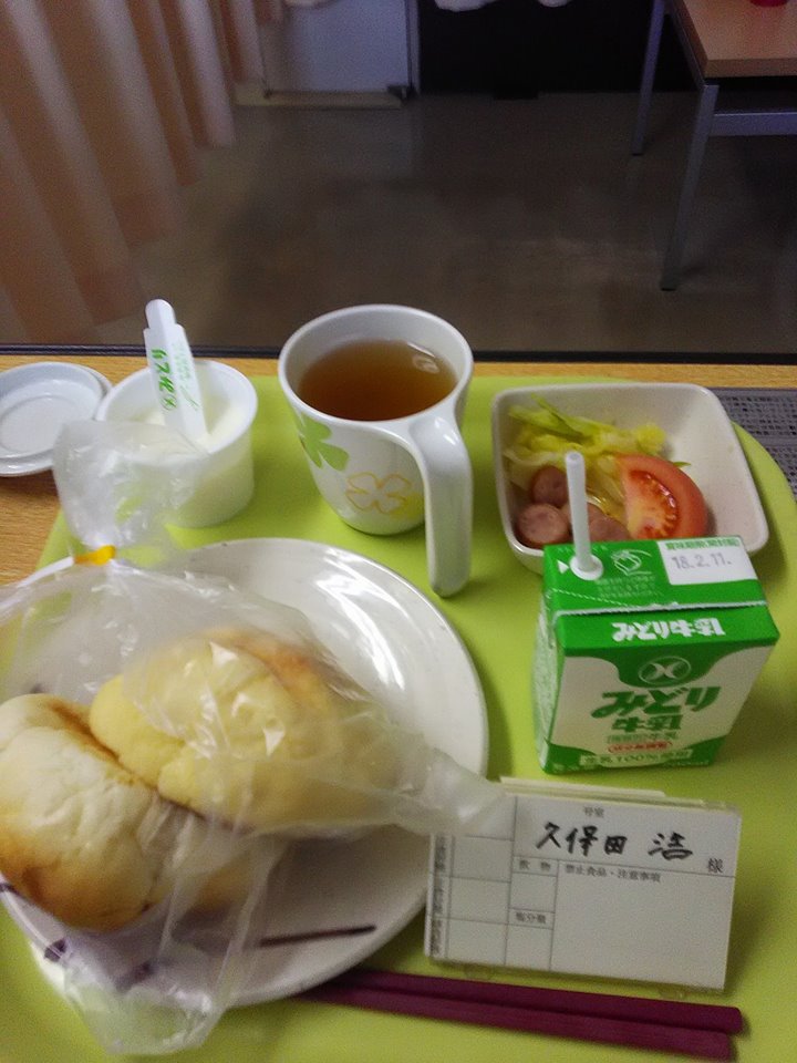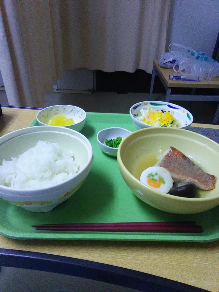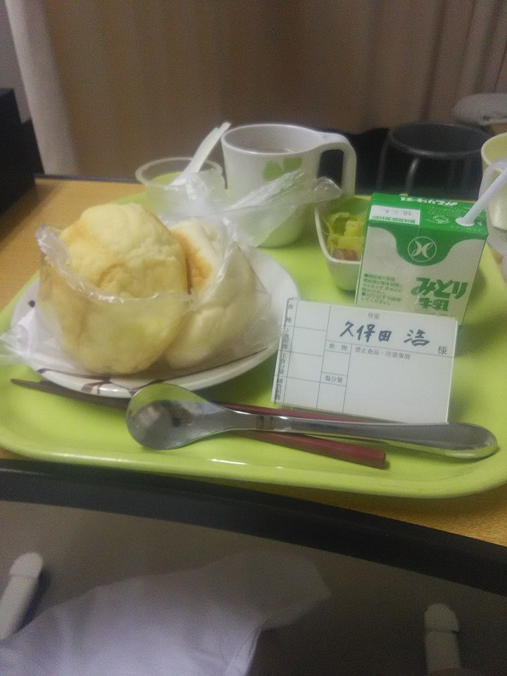 予想はしていましたが、鈍痛で熟睡は出来ず、また痛み止めをもらいました。食事ですが、言われていたとおり朝から出ました。普通食です。午前中に点滴無しになりました。知人がお菓子を持ってお見舞いに来てくれました。病院名は数人しか伝えていなかったのですが、病室からの写真の外の風景で場所がわかったそうで(^^)