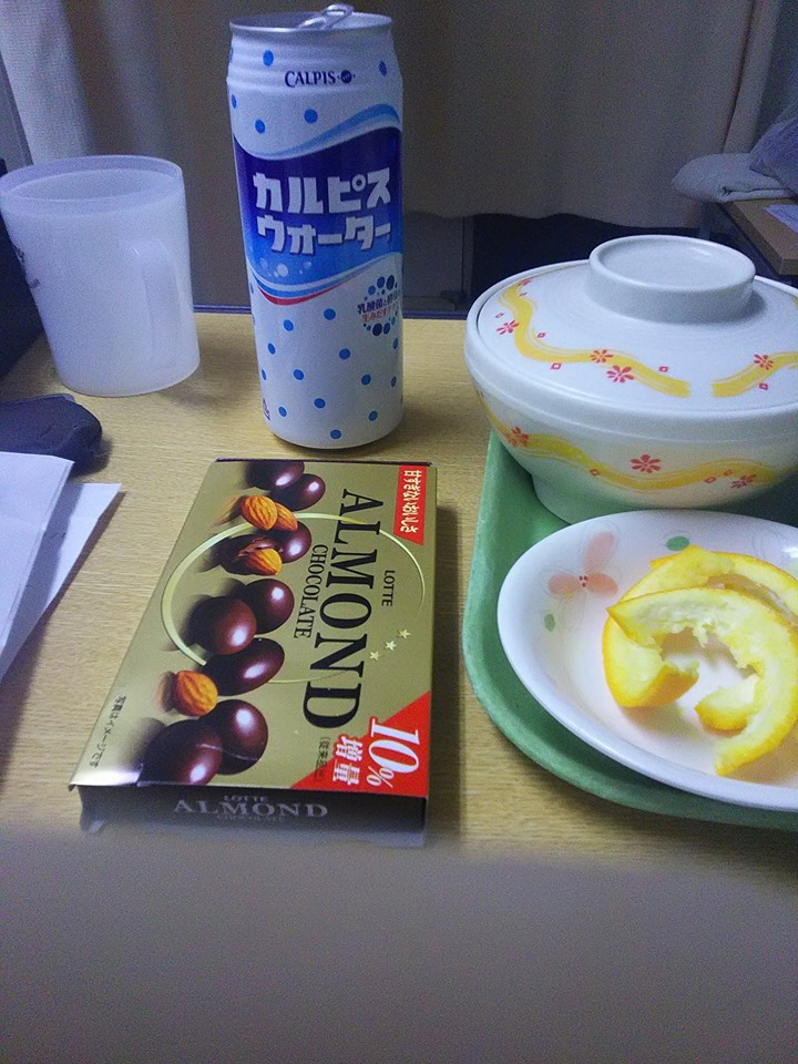 あと、この日は知人がお菓子を沢山持ってお見舞いに来てくれました。もうこの頃はリハビリだけで何もする事がないので、楽しみです。
