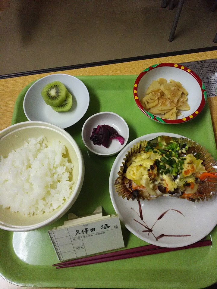 夕食時間に知人が2人、たくさん物を持ってお見舞いに来てくれました。色々な話が出来ました。