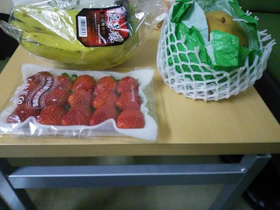 昼食前に知人が色々と持ってお見舞いに来てくれました。