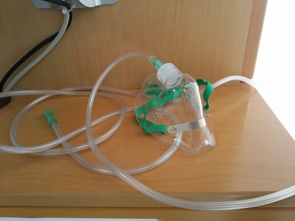 ところで、手術の時に私に付けられた酸素マスクがテレビ台のところにずっと置きっぱなしにしてありました。なぜ置いたままなのか分かりませんでしたが。後から聞くと手術室から部屋に戻っても、必要な人のために必ず持って来るそうで。
