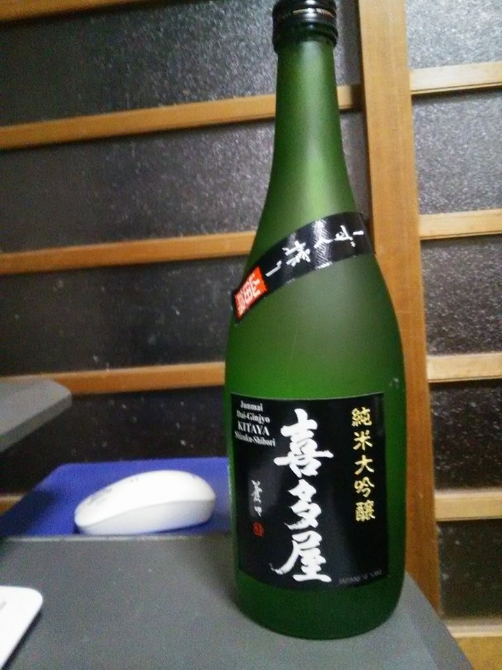 しばらく部屋の片付け等をやって、日本酒を。何本か在庫があるので、一番好きな喜多屋の純米大吟醸・しずく搾り。