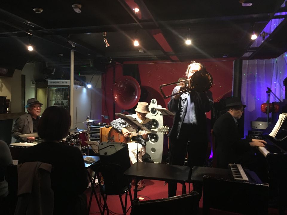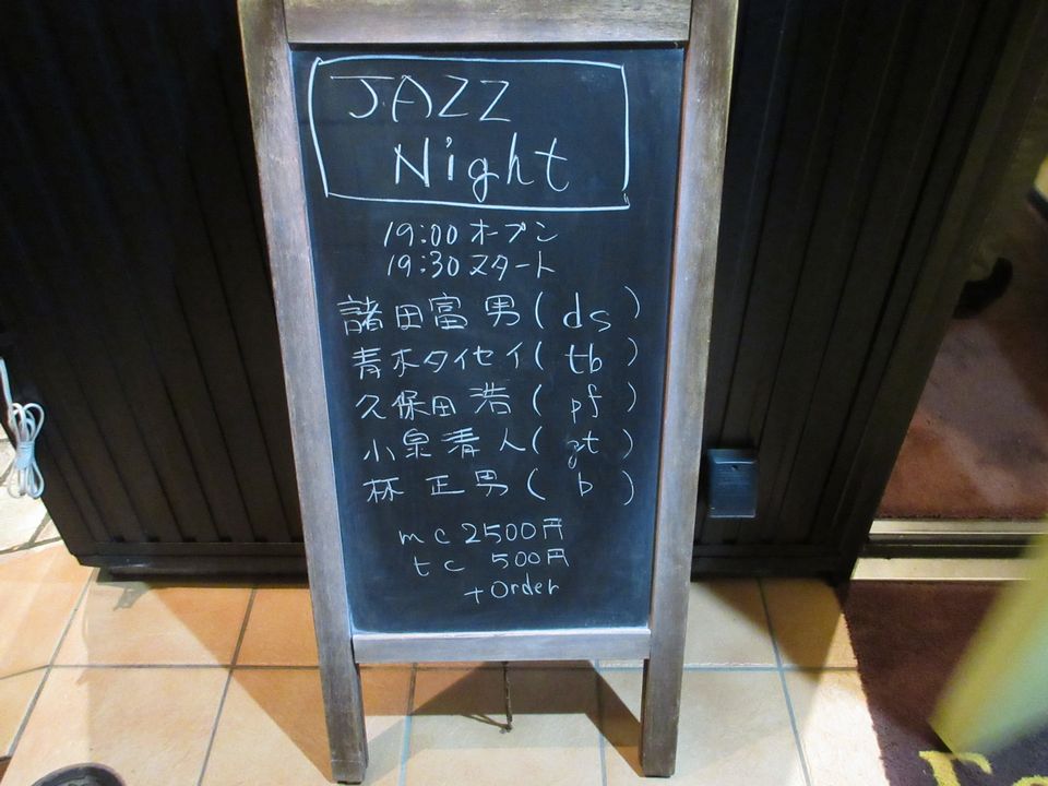 お馴染みのドラムの諸田さん、ベースの林さん、今回3回めとなるギターの小泉さん、同じく3回めとなるトロンボーンの青木さん、約3週間前に武蔵境のフォンタナでやったメンバーと同じでした。