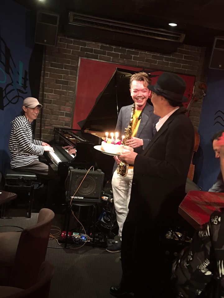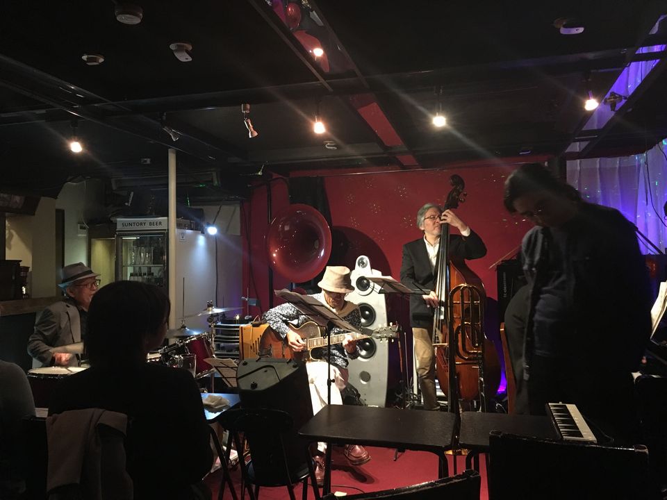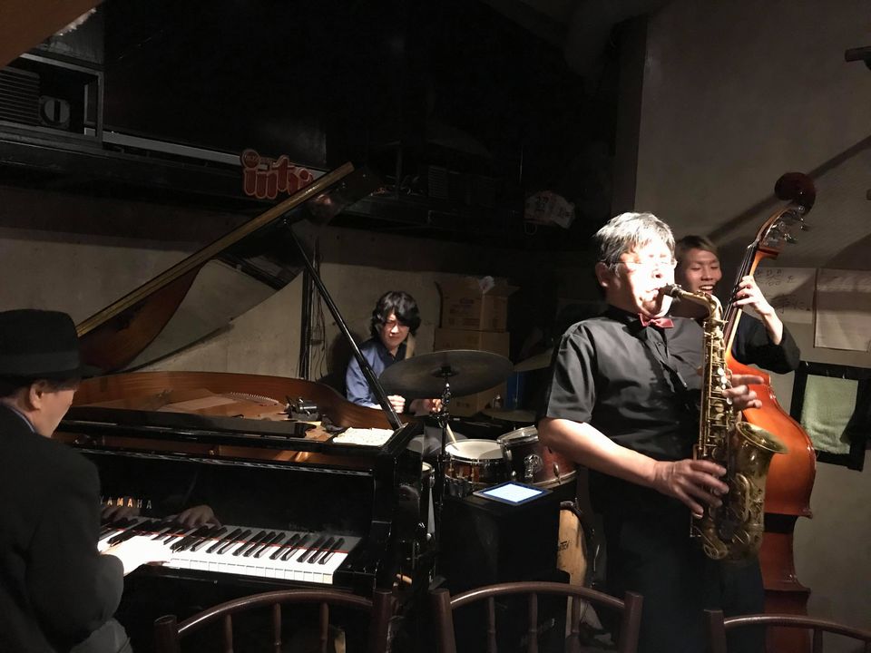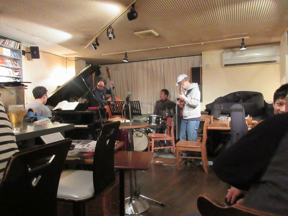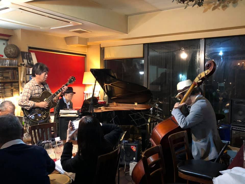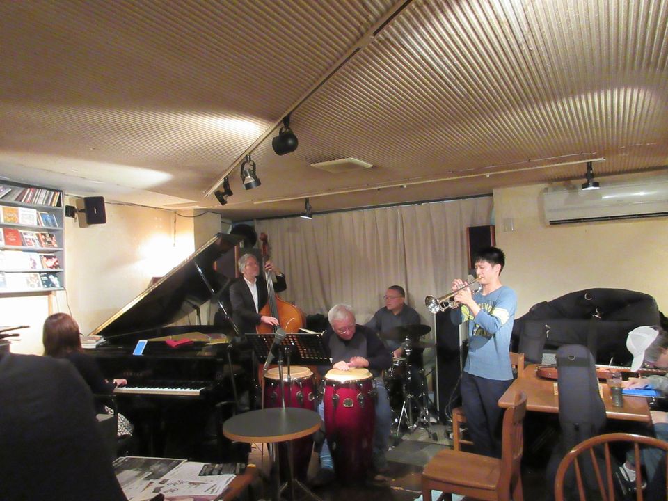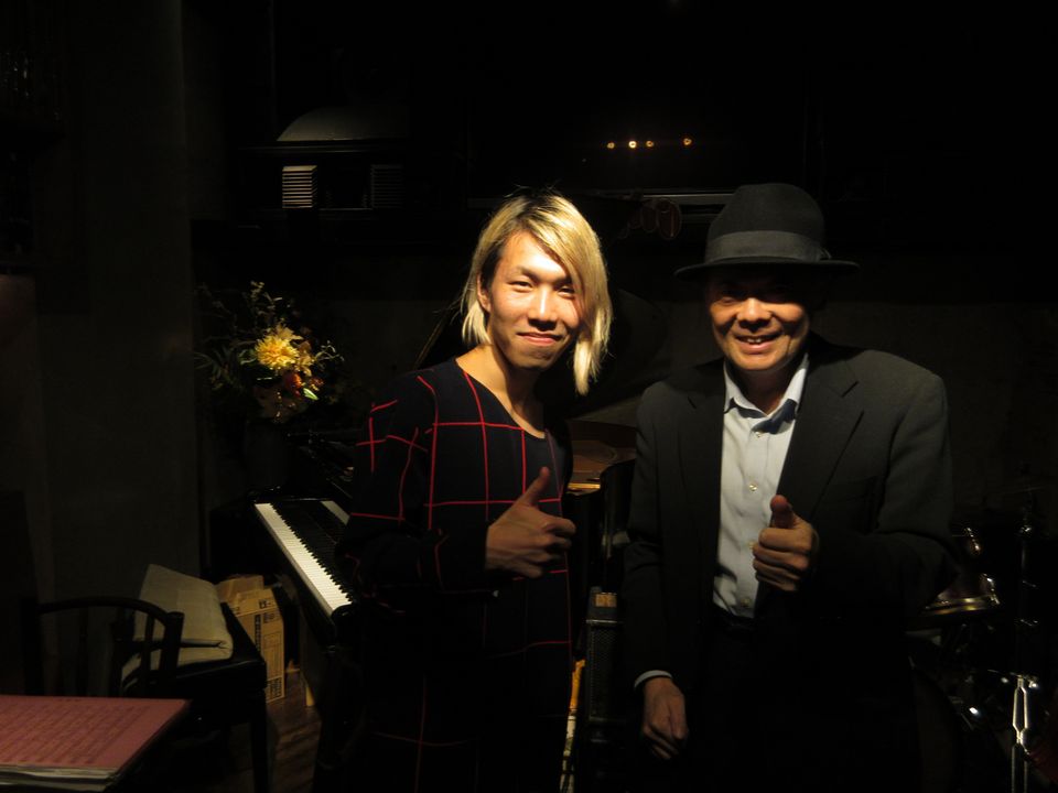 店に入るとセッション中。ベースの本川くんは10月10日私の誕生日ライブの時に一緒でした。ドラムの田村くんとは随分前にアルトの澤田一範さんのライブ等で何度かライブをやりましたが、その頃以来で久しぶりでした。