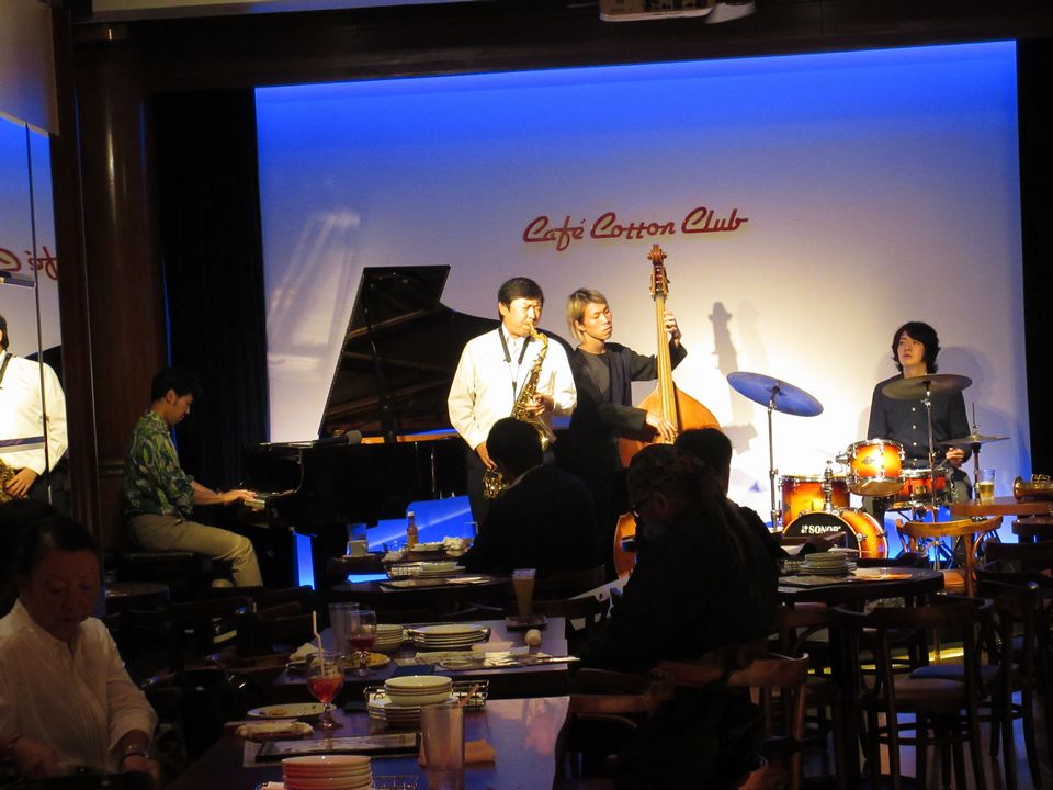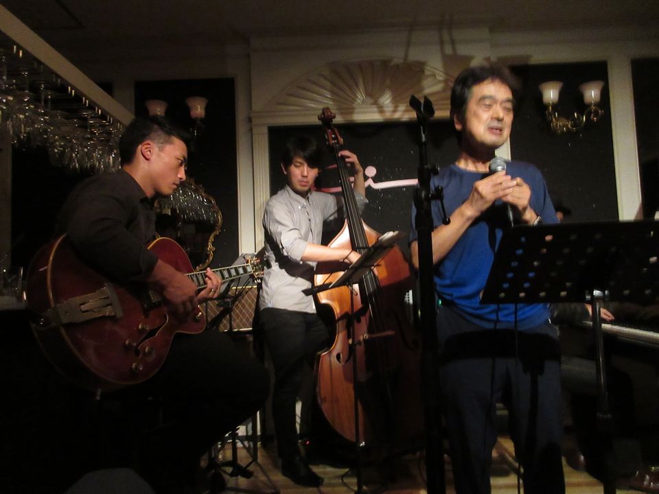 お客さんで知人では、まず久しぶりに会ったヴォーカルの高橋エミちゃん。彼女とは昔よく一緒にライブをやり、よく飲んだ仲間で、大好きなヴォーカリストです。会えて本当に良かったです。あと、エミちゃんと一緒にいらっしゃった、レイさんの六本木のキーストンクラブの時にいらっしゃっていた丹下さん、そして、もう何度も来てもらっているジャズ研同期のドラムの学(まなぶ)に来ていただきました。