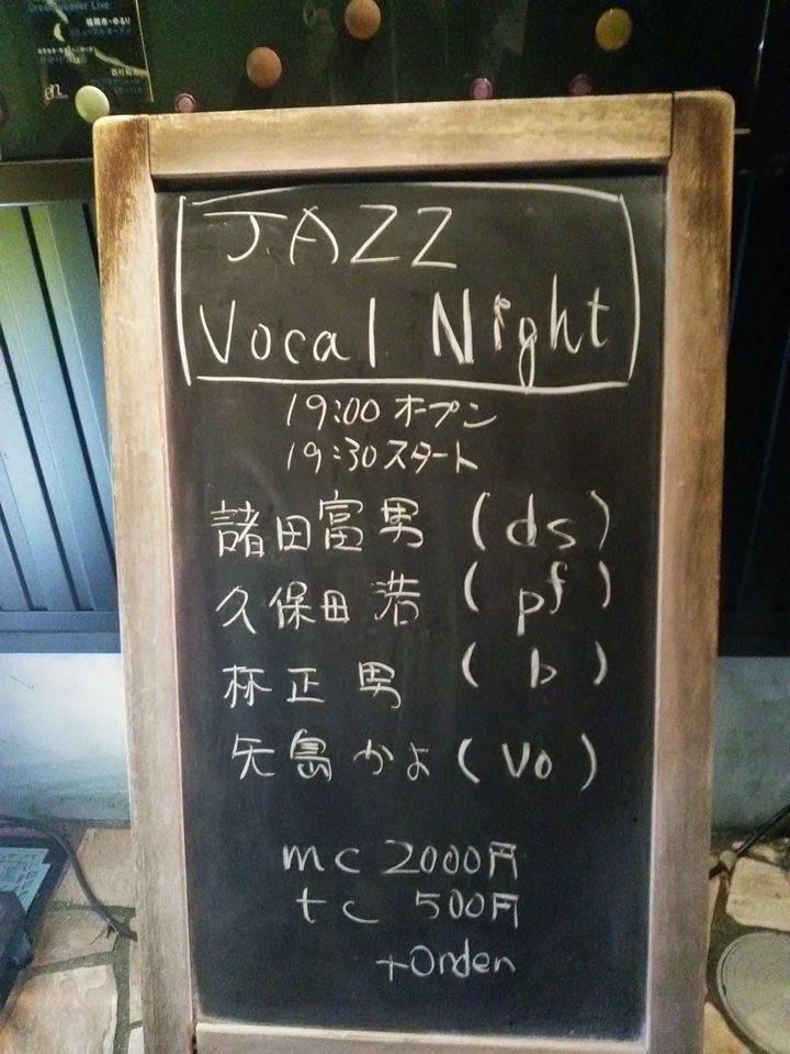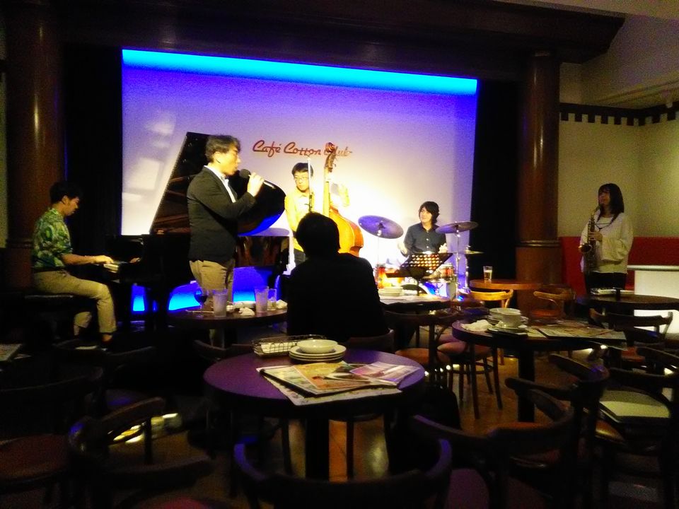 その後はセッションでしたが、参加者で私の知人では、ジャズ研先輩のドラムの能登谷さん、同期のドラムの学(まなぶ)、ギターの佐々木さん、ベースの内田さん、ヴォーカルの岩橋さん、今回一緒にライブをやったヴォーカルの園カヨさん、がいらっしゃいました。最後には随分前からの知人でヴォーカルの上杉亜希子ちゃんが来てくれました。あと法政大学ビッグバンド後輩のピアノの尚美ちゃんや、他にも沢山の参加者やお客さんがいらっしゃいました。