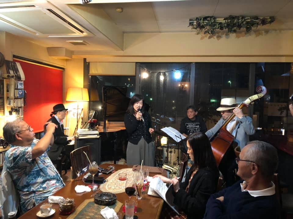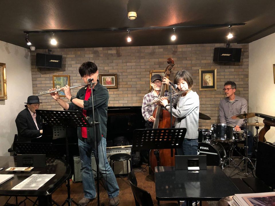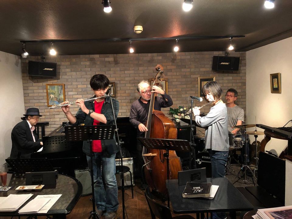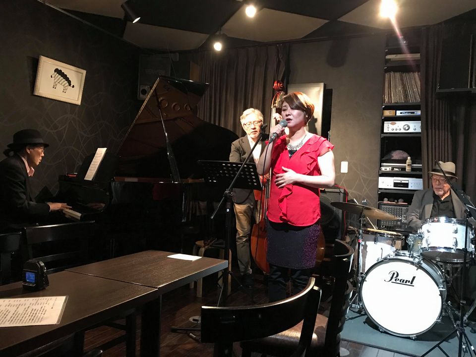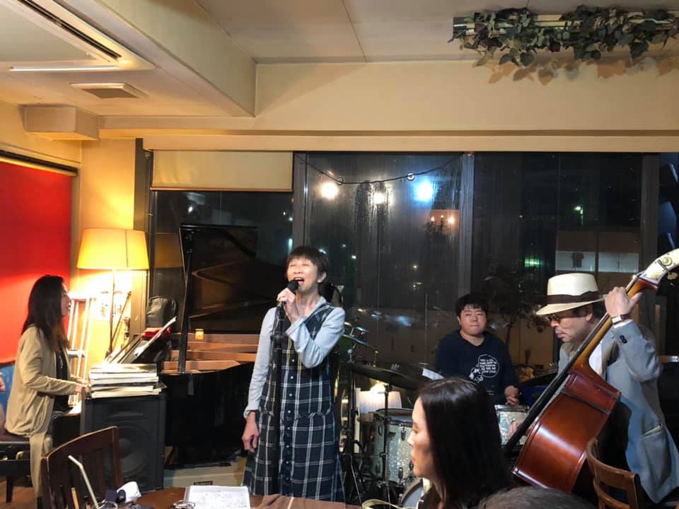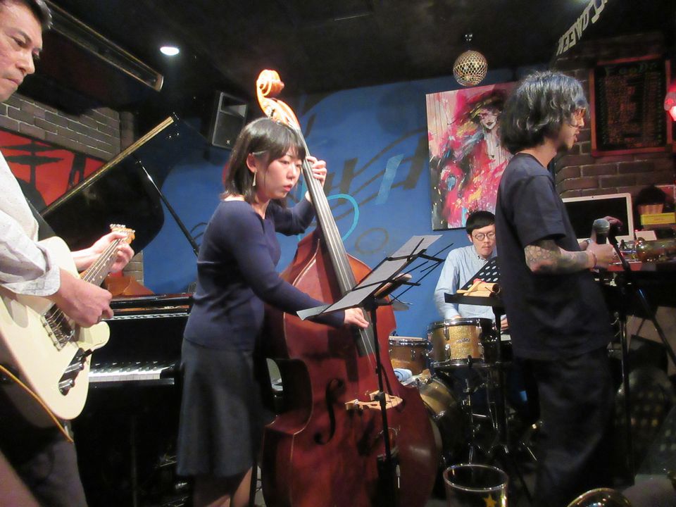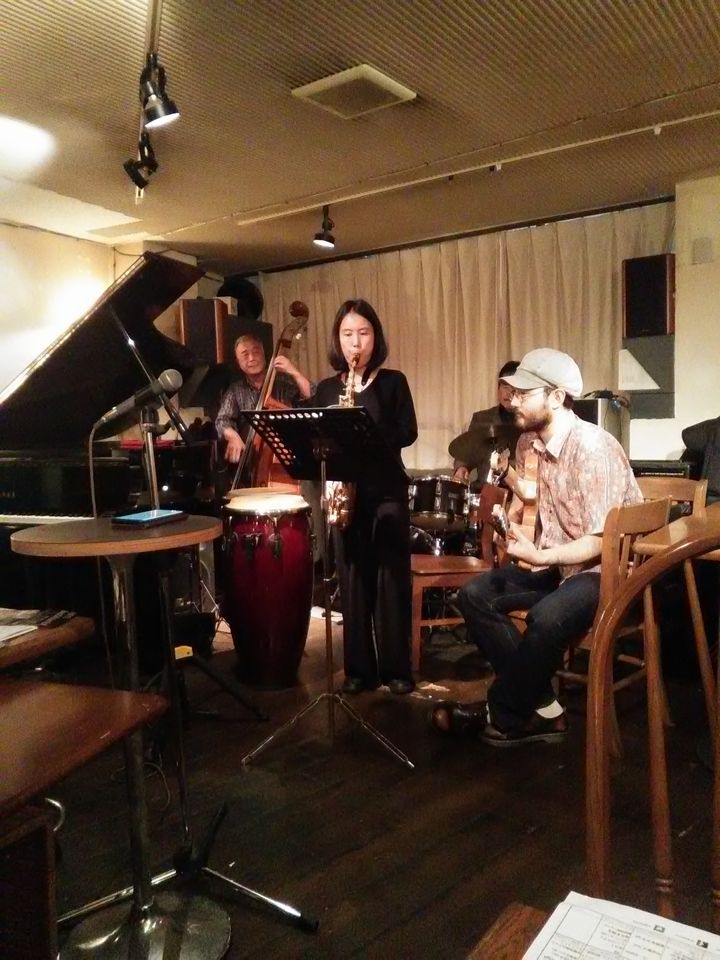 途中で、あらかじめ伝えてはいたのですが、ベースの林さんが、ピアノの田中愛子ちゃんとヴォーカルのNayokoさんと一緒に来店しました。田中愛子ちゃんは去年阿佐ヶ谷マンハッタンのセッションで会いました。Nayokoさんは今年の2月に一緒にライブをやりました。