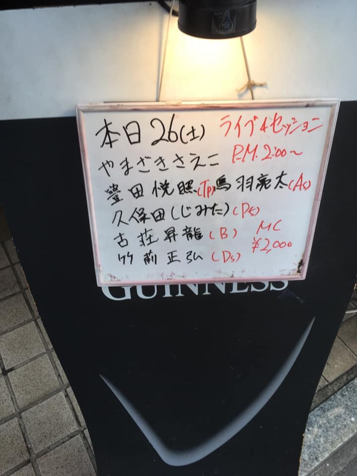 古荘昇龍(b) 私(p) 豊田悦照(tp) 鳥羽涼太(as)
